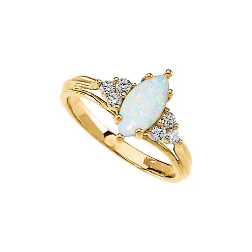 14K Yellow Gold 1/5 ct. Diamond and 10 x 5 MM Marquise Shaped Opal Cabochon Ring Review