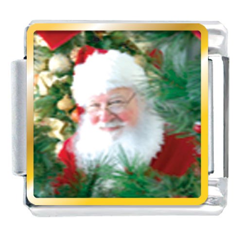 Get into the Christmas spirit with this Pugster Santa Claus is Here Italian charm. Right up there with eggnog and cookies as a Christmas tradition, the picture of Santa Claus in person, peeking out from behind a pine tree, is certain to remind of all the beauty that surrounds us at this time of year. Crafted of the finest stainless steel with a soldered face (as opposed to less durable glue), this photo charm sure to be a hit as you build your Italian charm bracelet or anklet. You can build your bracelet all at once, or gradually over the years. Also a great gift for the holiday season. Crafted and authenticated by Pugster (TM) Inc., this Santa Claus is Here Italian charm is available for both retail and wholesale purchase in our store and is compatible with charms from all major brands.