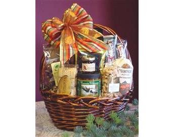 This Obviously Wisconsin Gift Basket from a Sweet Gift Express contains a wide variety of Wisconsin made foods in a very attractive and sturdy rust colored basket. With plenty to go around, this gift is a wonderful choice for any office or family setting. Includes: 10 oz. Wisconsin Wilderness Cranberry Salsa; 12 oz. Badger Blue Tortilla Chips; 4 oz. Buddy Squirrel Whole Cashews; 12 oz. Great Skott Chocolate Malted Milk Balls; 3 oz. Most Fantastic Shortbread Cookies; 8 oz. Willow Creek Muffin Mix; 1.5 oz. Door County Coffee; 6 oz. East Shore Dipping Pretzels; 2-1 oz. Bavaria Sausage Landjaeger Meat Sticks; 6 oz. Rural Route 1 K'Nuckle White Chocolate Popcorn; 5 oz. Mille Lacs Chocolate Caramel Peanut Clusters; and 1.5 oz. Jelly/Jam/Preserves