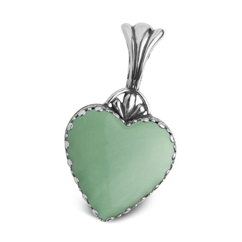 The Te Amo jewelry collection by Carolyn Pollack features sterling silver hearts set with beautiful and wearable genuine gemstones. Green variscite is framed beautifully in a sterling silver bezel. Valued as a meditation stone, variscite is believed to balance the nervous system while easing depression, fear, and anxiety. Display on a sterling chain or beads (up to 9mm) with medium size bail. Measures 2 inches L x 1 1/8 inch W. Made in New Mexico, USA.