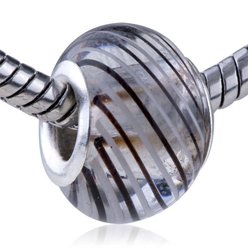 Pandora Style Bead White Brown Helical Line Translucent Glass European Charm Bead Fits Pandora Bracelet Review