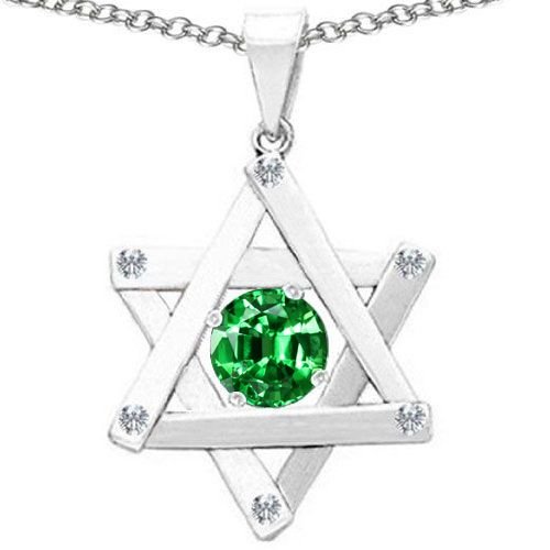 CandyGem 925 Sterling Silver Created Round Emerald Star of David Judaica Pendant Overview
