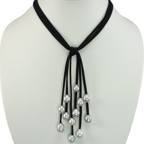 Black Triple Strand Suede Necklace with Cascading Dyed Gray 9-10mm Cultured Pearls Review