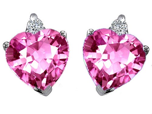 14K White Gold Plated 925 Sterling Silver and Created Heart Shape Pink Sapphire Earrings crafted in 14k White Gold Plated Silver Dimensions: Width: 7.00 mm Length: 10.00 mm2 Stones 3.00 Carats Heart Shape 7 mm Color: Pink Clarity: Clean, 2 Stones 0.10 Carats White Quartz Color: Colorless Clarity: Clean FREE GIFT BAG! FREE GIFT CARD! Finejewelers Style Number: 302438.