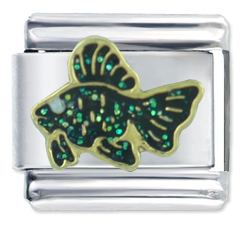 Nothing makes life seem so special as a cute animal, and the glittery dark aquatic pet on this Black Moor Fish Italian charm is one of the cutest you will ever see. Whether you will be using this charm to add to your own Italian charm bracelet or anklet, or want to give it as a gift to a close friend, you surely cannot go wrong with something this adorable. The enamel design of the charm's face is soldered onto the stainless steel base of this durable link. Crafted and authenticated by Pugster (TM) Inc., these Black Moor Fish Italian charms are available for both wholesale and retail purchase from our store and are compatible with charms from all major brands.