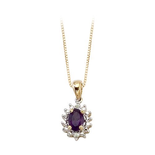 14K Yellow Gold 0.02 ct. Diamond and 6 x 4 MM Oval Shaped Amethyst Pendant with Chain Review