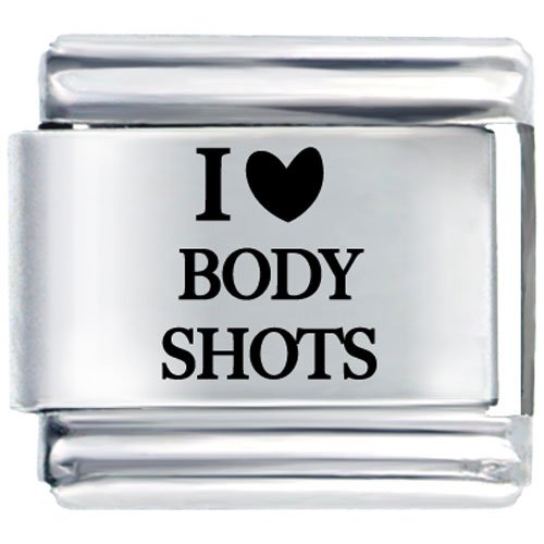 Get your message across with this I Heart Body Shots Laser Italian charm. Pugster (TM) Inc.'s laser Italian charms are the finest around, featuring the most current designs and the highest quality. Looking fresh and modern, the heart design and "I Heart Body Shots" on this Italian charm make it a perfect addition to your charm bracelet, letting everyone know that you love the sensual vodka shot. This charm would also be a great gift for friends and family who know how to have a good time! Like all Italian charms crafted and authenticated by Pugster Inc., this beverage charm is available for both retail and wholesale purchase from our store and is compatible with all major brands.