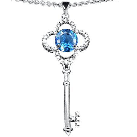 Candygem 14k White Gold Plated 925 Sterling Silver 1.5inch Key to my Heart Love Key Pendant with Genuine Blue Topaz by Venezia Designs, Free 18 Inch Silver Chain, Free Gift Box. Overview